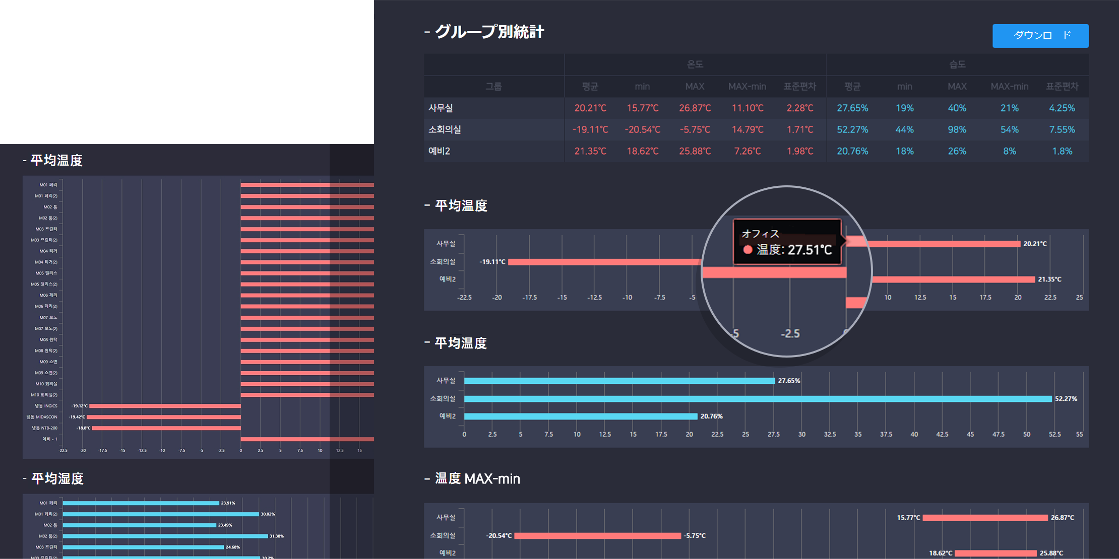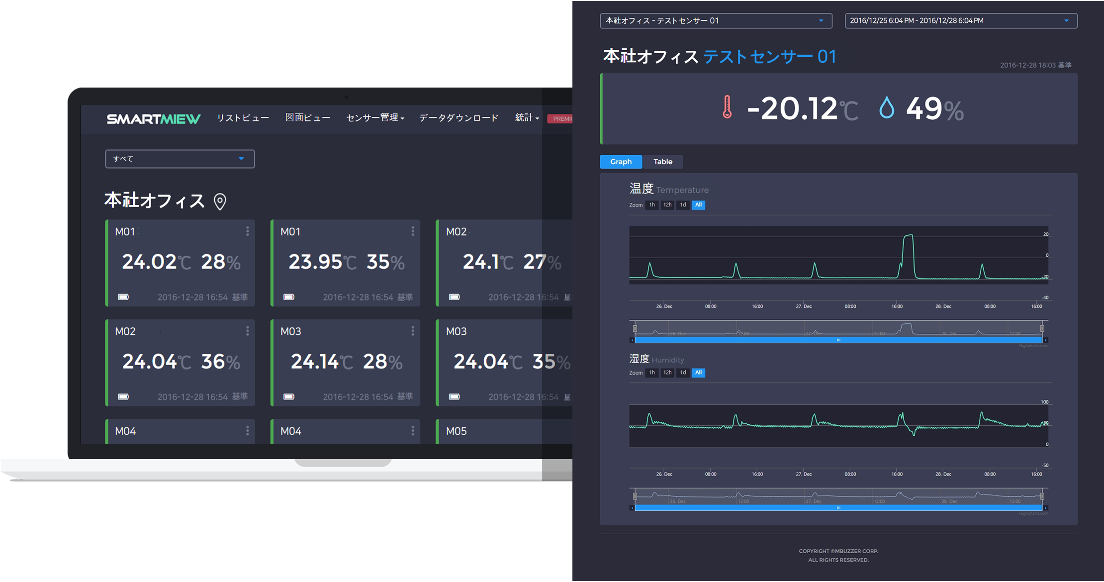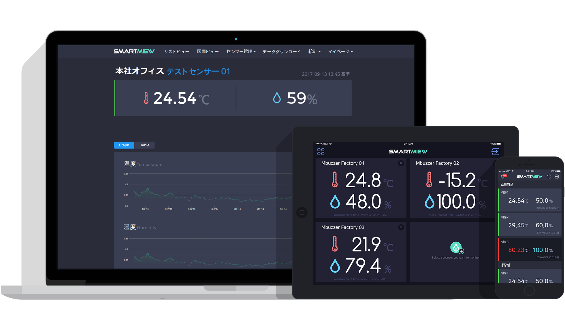 ショーケース、材料冷蔵庫をリアルタイムモニタリング。店舗の温湿度をモニタリングし、快適な店舗作りに役立ち