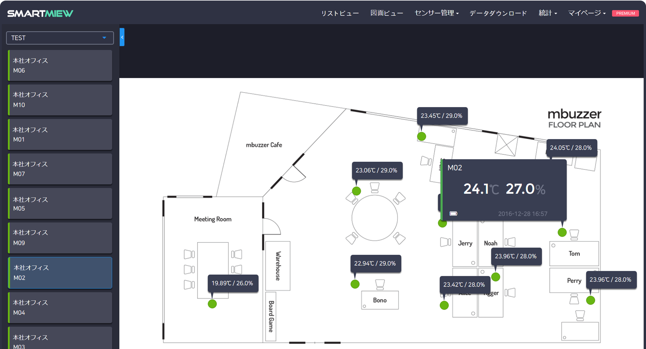 図面にセンサーを表示することでより効率的にモニタリングができます。