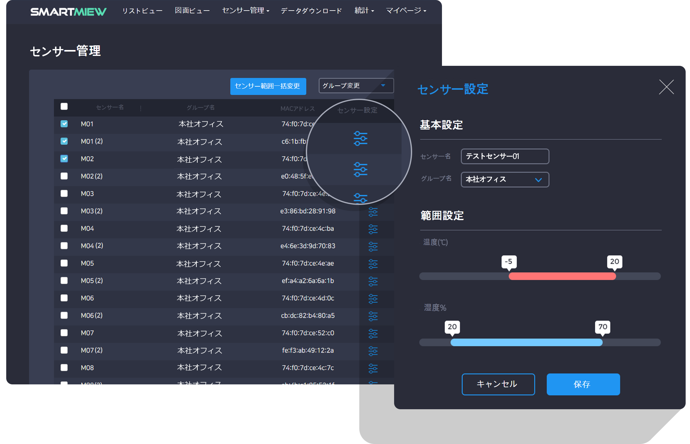 センサー別に正常範囲を設定することが可能で、この範囲を超えた場合はすぐに通知してくれます。